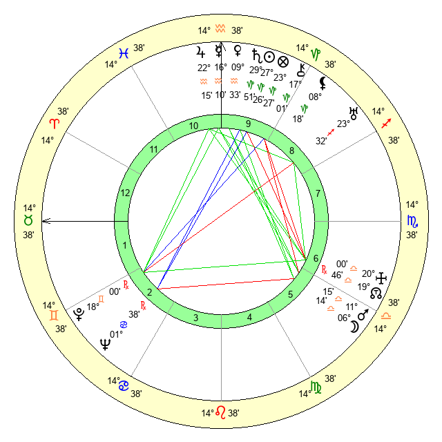 | Moon | 6 Libra 10 | 24 Virgo 40 | 10 Pisces 18 |