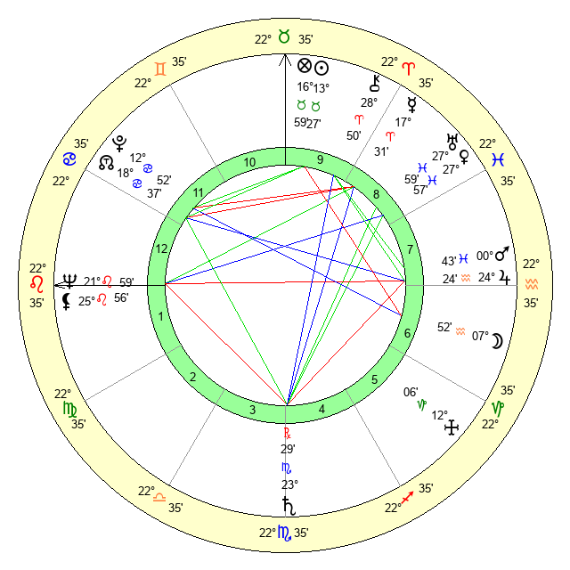 | Neptune | 21 Leo 59 | 1 Aries 12 | 24 Leo 17 |