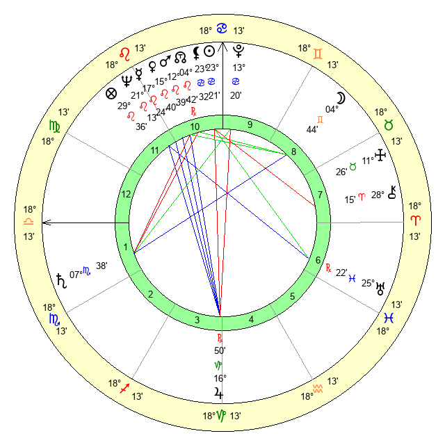 | Sun | 23 Cancer 22 | 24 Cancer 10 | 0 Scorpio 31 |