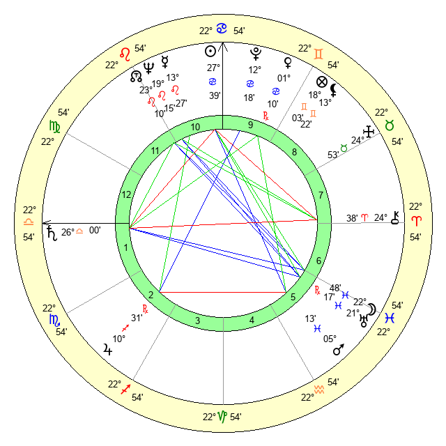 | Moon | 22 Pisces 52 | 3 Gemini 54 | 25 Scorpio 25 |