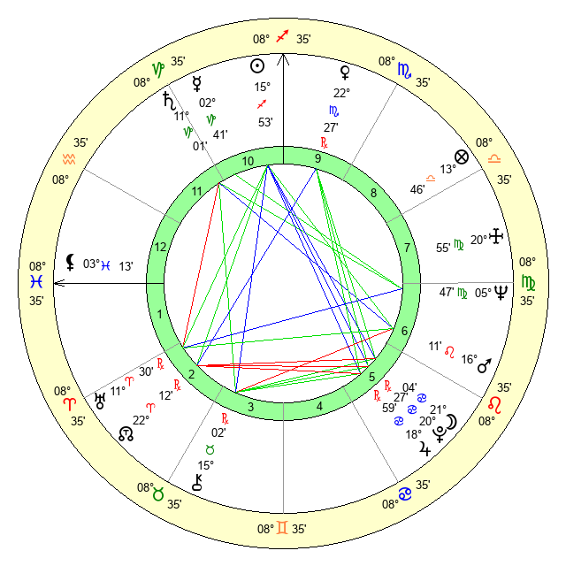 | Venus | 22 Scorpio 28 | 1 Aquarius 40 | 7 Aquarius 47 |
