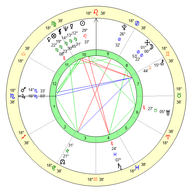 | Sun | 29 Leo 37 | 0 Virgo 49 | 28 Scorpio 27 |