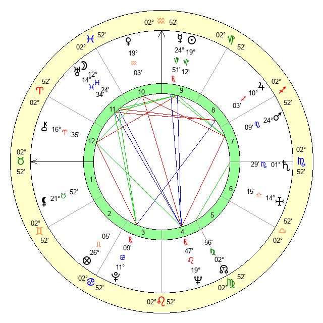 | Moon | 12 Pisces 24 | 9 Gemini 27 | 16 Scorpio 4 |