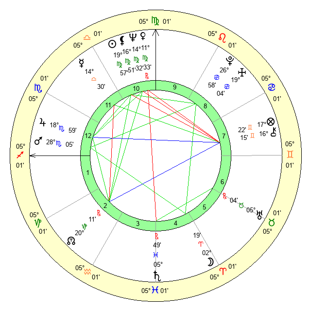 | Venus | 11 Virgo 32 | 22 Leo 55 | 4 Scorpio 36 |