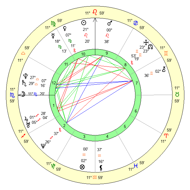 | Venus | 7 Virgo 11 | 16 Cancer 59 | 25 Leo 2 |