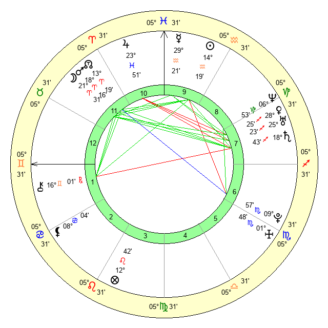 | Jupiter | 23 Pisces 55 | 11 Gemini 16 | 2 Aries 40 |
