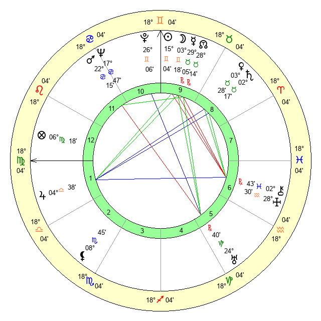 | Moon | 3 Gemini 21 | 25 Libra 21 | 23 Leo 14 |