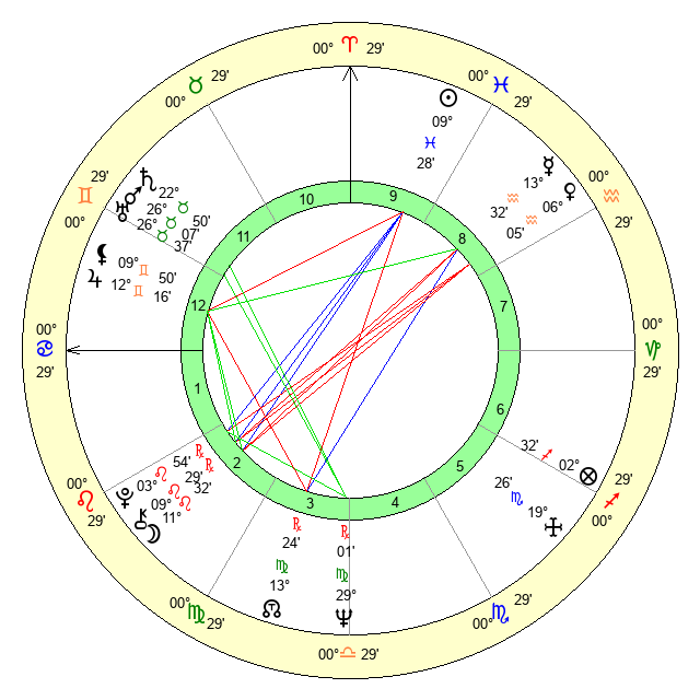 | Sun | 9 Pisces 29 | 10 Pisces 21 | 0 Gemini 57 |