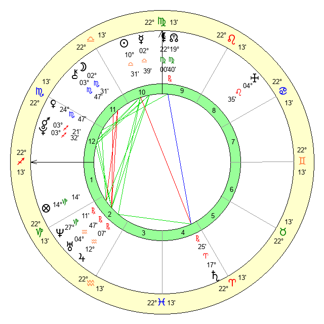 | Moon | 2 Scorpio 38 | 24 Aquarius 48 | 11 Scorpio 41 |
