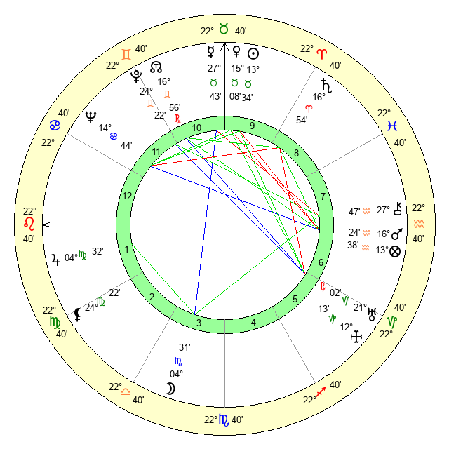 | Moon | 4 Scorpio 36 | 16 Leo 8 | 0 Aquarius 13 |
