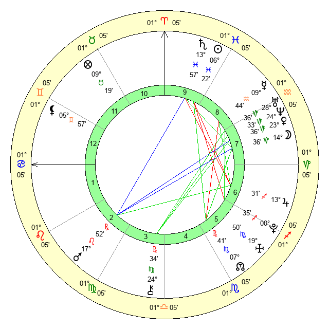 | Sun | 6 Pisces 22 | 7 Pisces 5 | 6 Aries 18 |