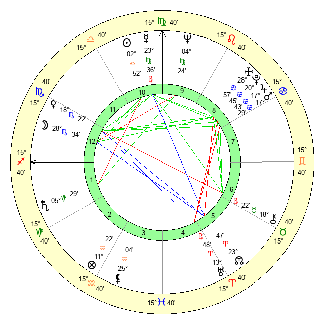 | Neptune | 4 Virgo 25 | 0 Aries 39 | 5 Virgo 39 |