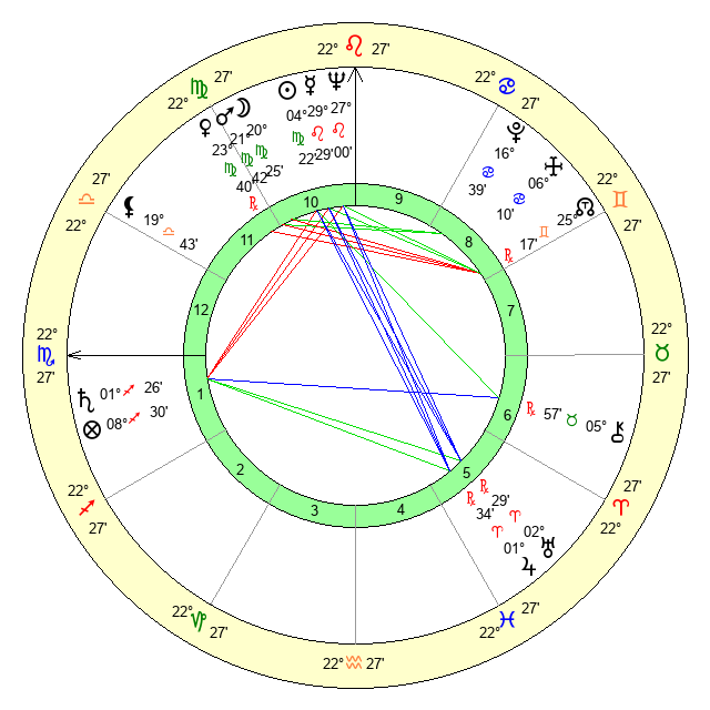 | Mercury | 29 Leo 30 | 21 Leo 4 | 23 Scorpio 20 |