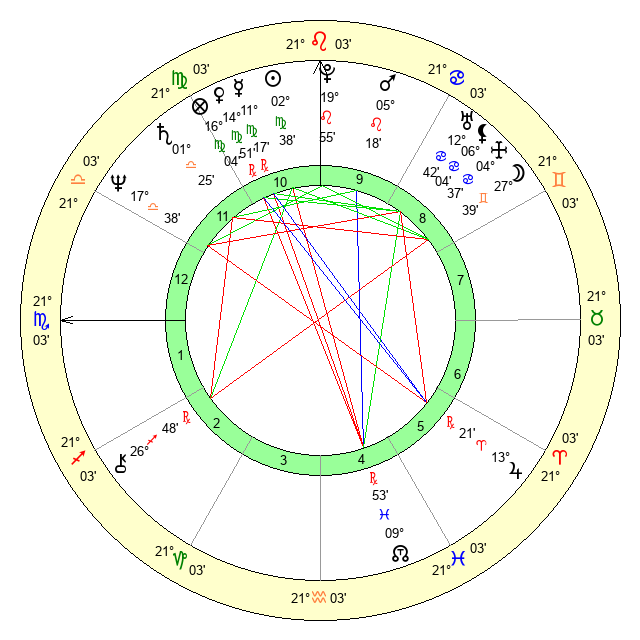 | Mars | 5 Leo 18 | 12 Libra 30 | 20 Virgo 57 |