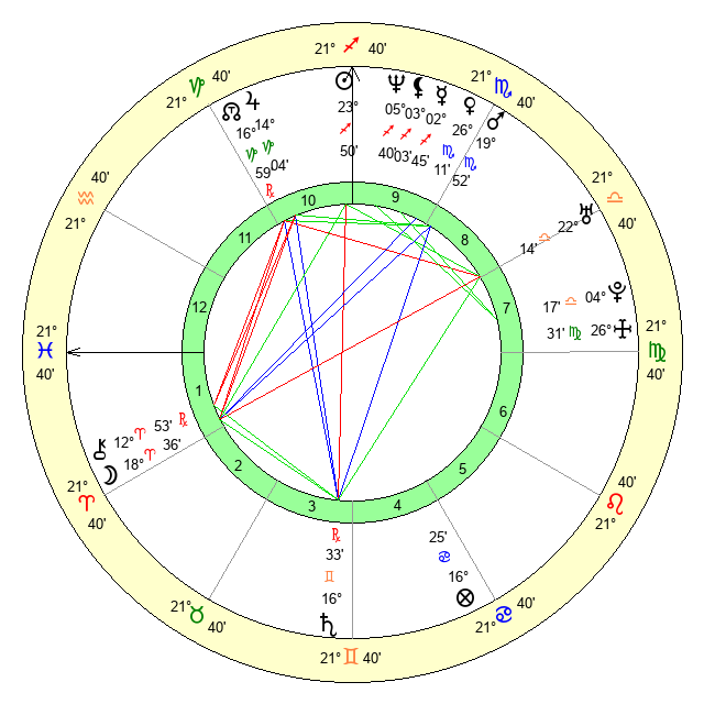 | Moon | 18 Aries 43 | 28 Gemini 39 | 14 Pisces 39 |