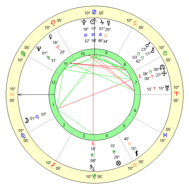 | Venus | 18 Leo 21 | 0 Gemini 4 | 27 Scorpio 2 |