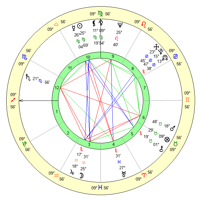 | Venus | 9 Virgo 55 | 0 Virgo 13 | 13 Capricorn 57 |