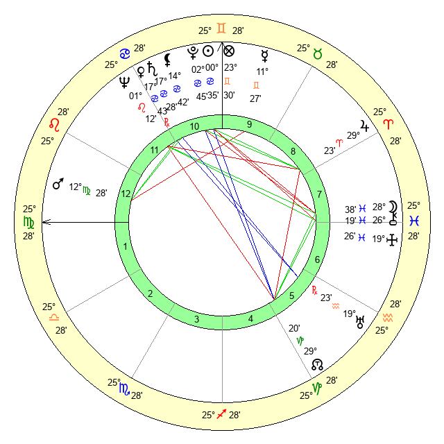 | Mars | 12 Virgo 28 | 2 Virgo 50 | 20 Scorpio 57 |