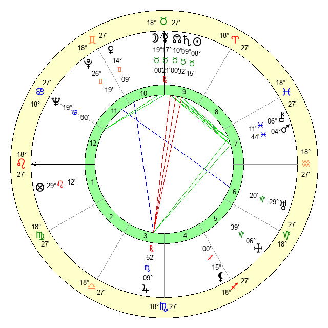 Moon | 19 Taurus 1 | 6 Gemini 33 | 23 Cancer 54 |