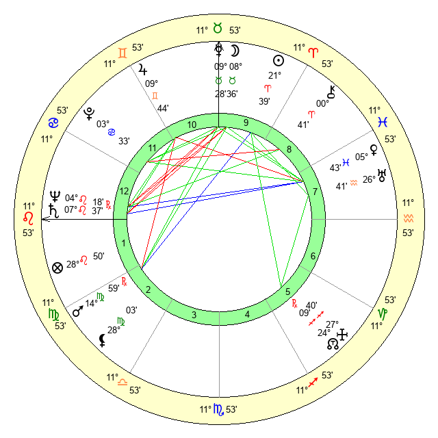 | Saturn | 8 Leo 22 | 25 Pisces 45 | 16 Leo 55 |
