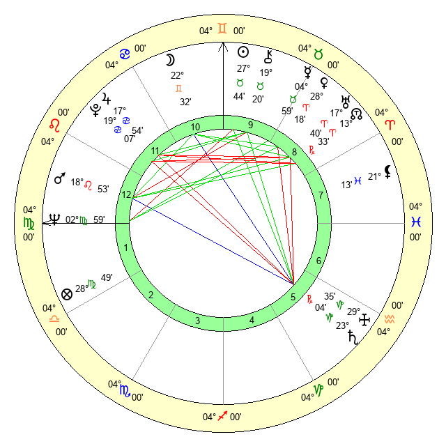 | Moon | 22 Gemini 41 | 19 Aquarius 5 | 13 Sagittarius 4 |
