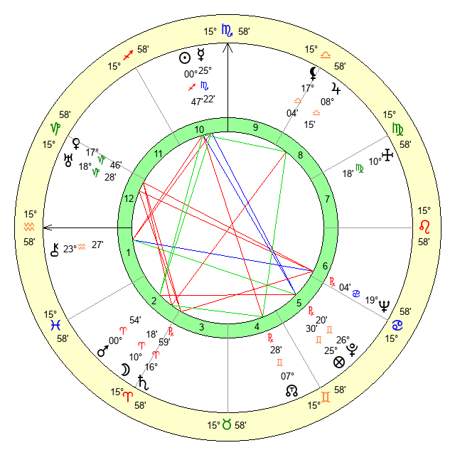 | Moon | 10 Aries 27 | 9 Virgo 8 | 4 Cancer 15 |