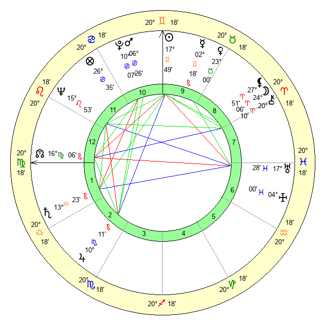 | Sun | 17 Gemini 49 | 19 Gemini 6 | 25 Virgo 43 |