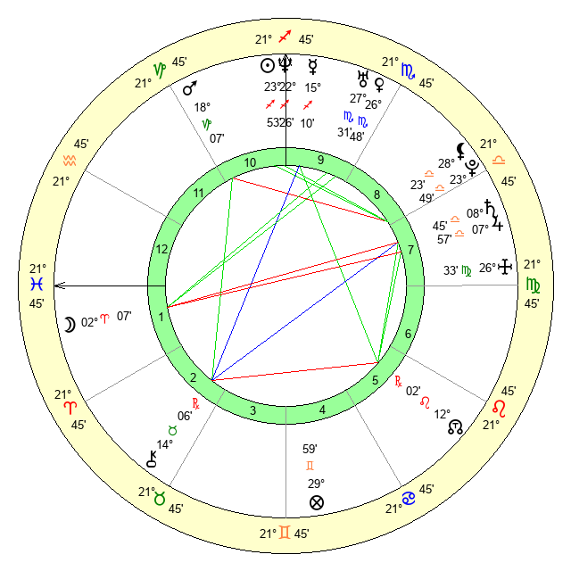 | Moon | 2 Aries 13 | 6 Scorpio 26 | 26 Scorpio 16 |