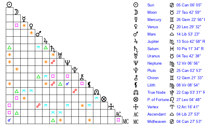 | Pluto | 25 Cancer 2 | 3 Aquarius 12 | 27 Cancer 10 |