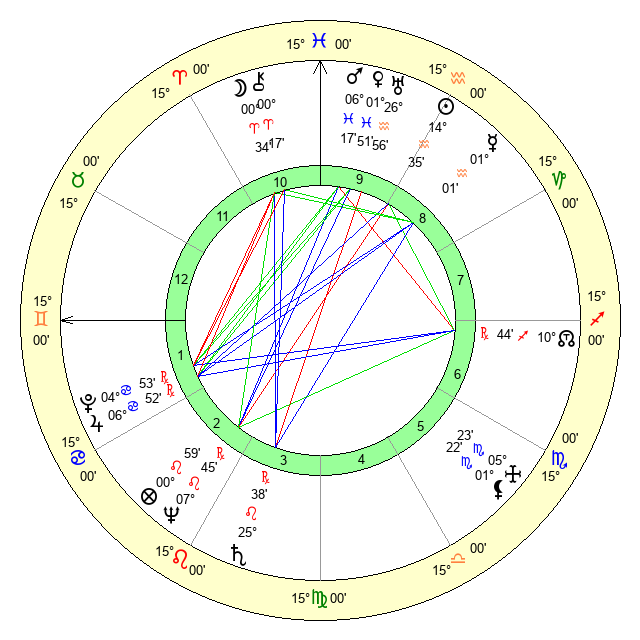 | Neptune | 7 Leo 45 | 28 Pisces 4 | 6 Leo 50 |