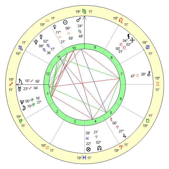 | Sun | 7 Libra 0 | 7 Libra 47 | 14 Scorpio 45 |