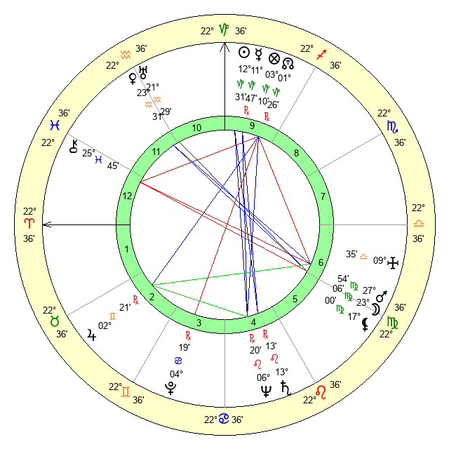 | Moon | 23 Virgo 3 | 0 Pisces 52 | 28 Leo 5 |