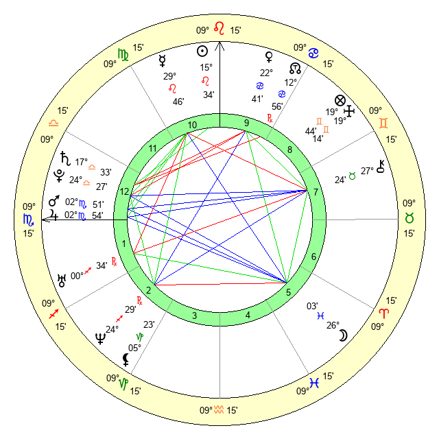 | Sun | 15 Leo 34 | 16 Leo 9 | 27 Virgo 9 |