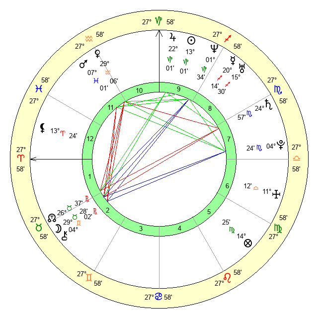 | Jupiter | 21 Capricorn 58 | 12 Gemini 57 | 1 Aquarius 17 |