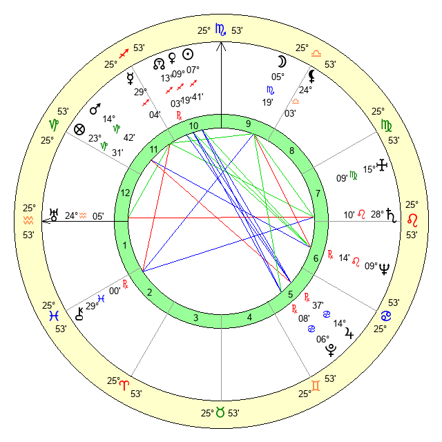 | Moon | 5 Scorpio 22 | 2 Sagittarius 41 | 25 Virgo 34 |