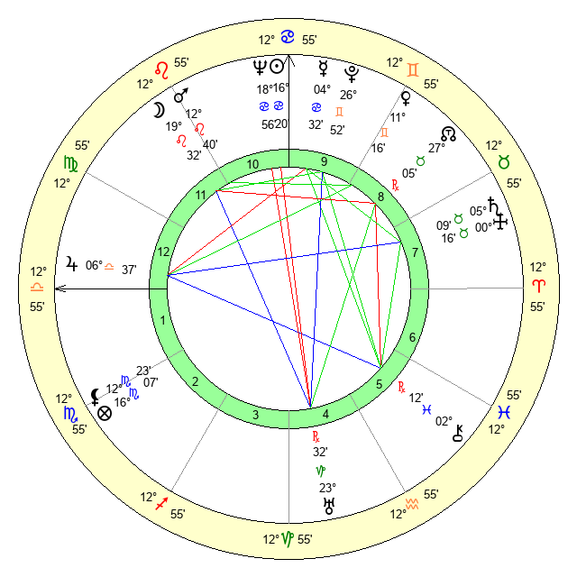 | Sun | 16 Cancer 20 | 17 Cancer 30 | 8 Scorpio 9 |