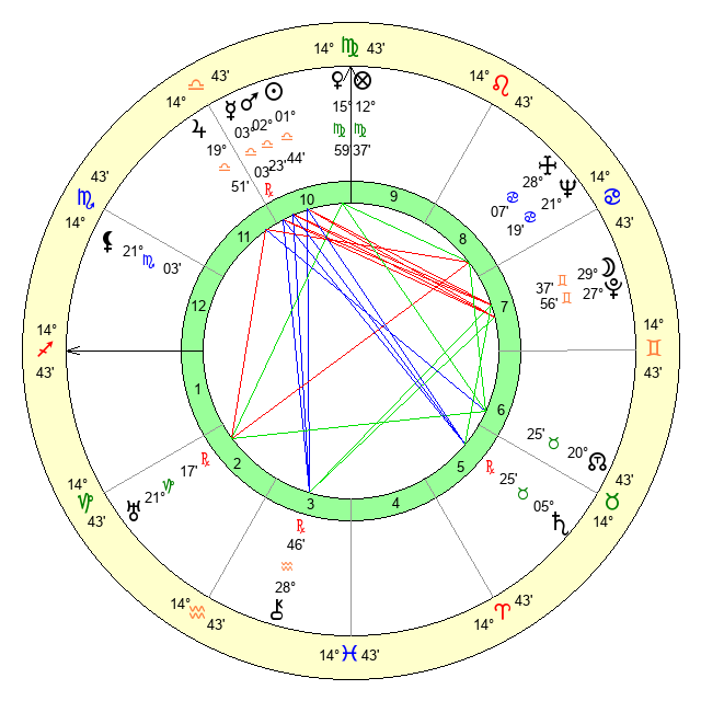 | Venus | 16 Virgo 0 | 7 Virgo 34 | 10 Aquarius 14 |