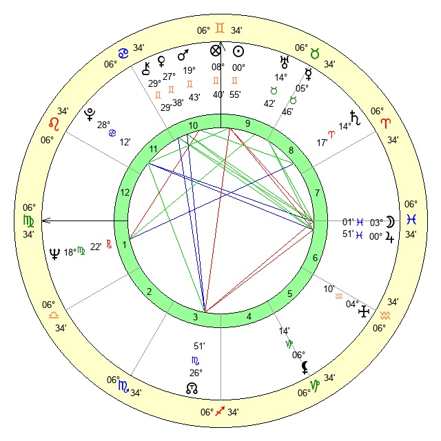 | Jupiter | 0 Pisces 47 | 25 Gemini 57 | 27 Aquarius 38 |