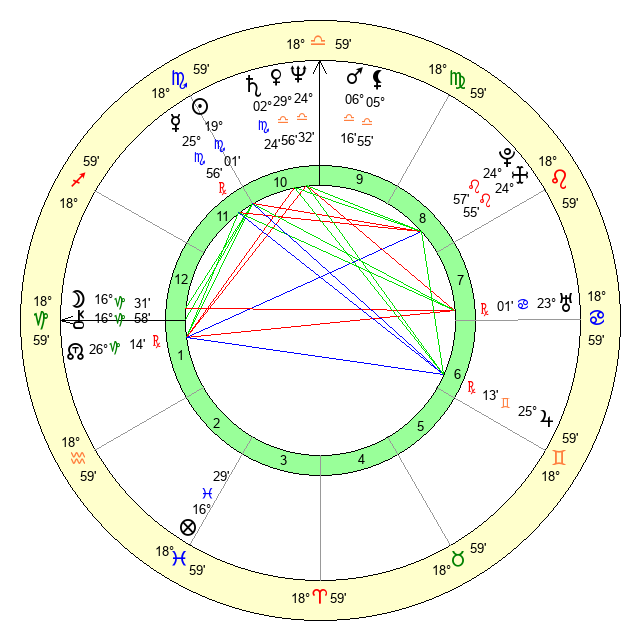 | Mars | 6 Libra 16 | 2 Leo 21 | 19 Scorpio 7 |