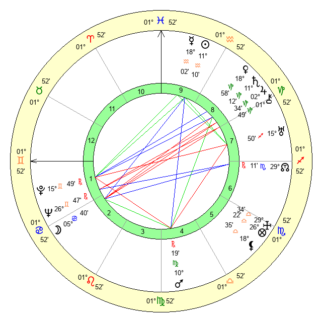 | Venus | 18 Capricorn 58 | 27 Pisces 13 | 22 Gemini 36 |