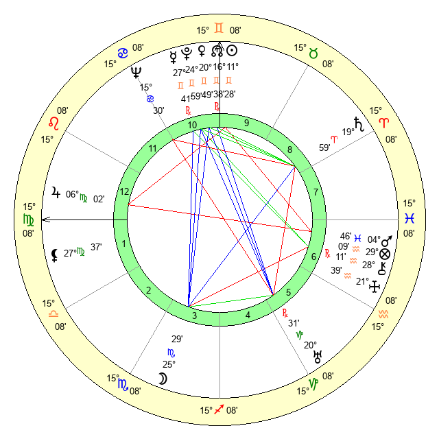 | Moon | 25 Scorpio 34 | 7 Virgo 26 | 22 Aquarius 55 |