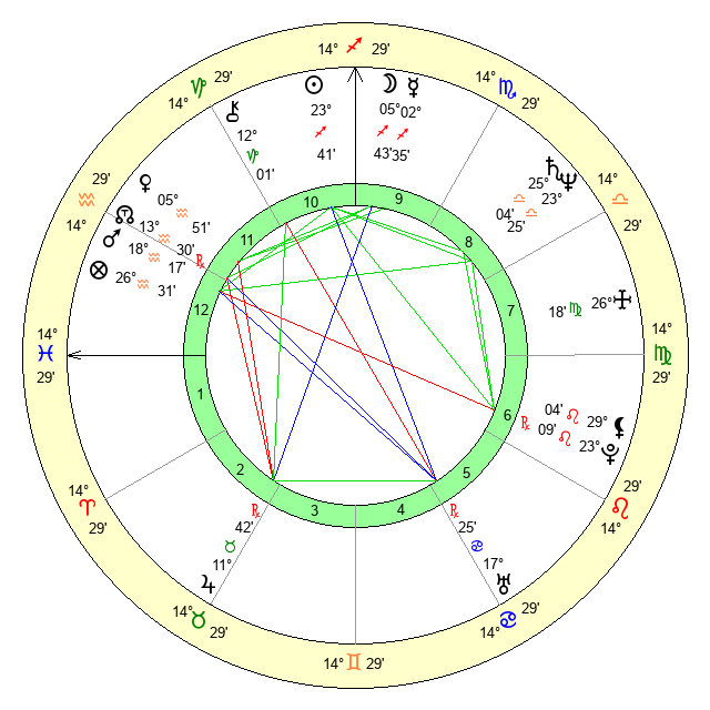| Moon | 5 Sagittarius 39 | 28 Gemini 39 | 3 Leo 21 |