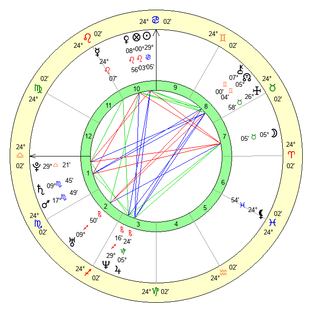| Sun | 29 Cancer 5 | 29 Cancer 11 | 8 Virgo 27 |