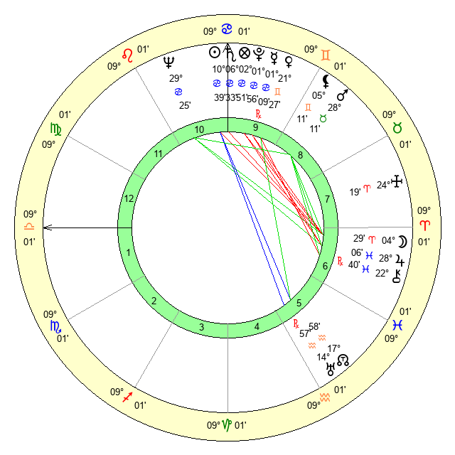 | Sun | 10 Cancer 39 | 12 Cancer 1 | 27 Libra 13 |