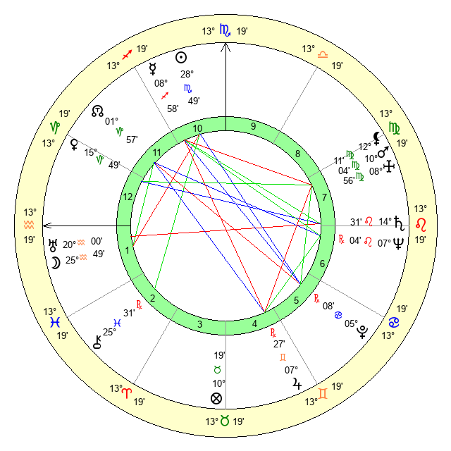 | Mars | 10 Virgo 4 | 4 Leo 42 | 26 Virgo 24 |