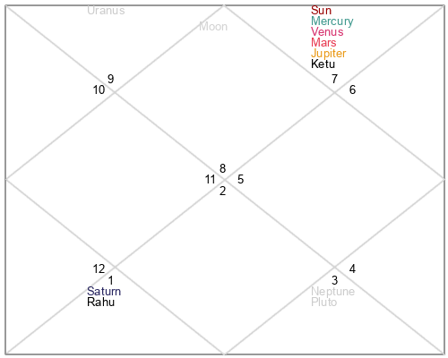 | Ketu | 19 Scorpio 25 | 4 Libra 28 | 13 Scorpio 23 |