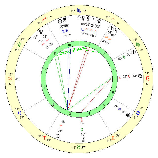 | Moon | 21 Aries 28 | 21 Scorpio 22 | 12 Sagittarius 54 |
