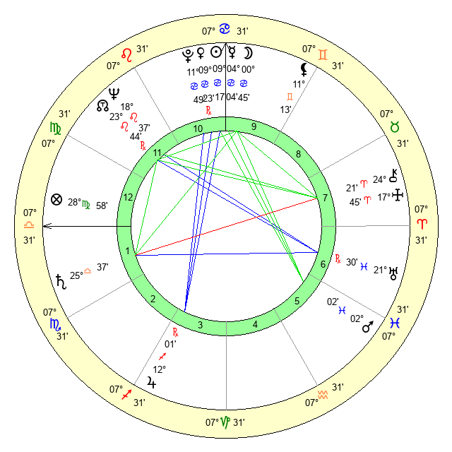 | Sun | 9 Cancer 18 | 9 Cancer 52 | 16 Libra 52 |
