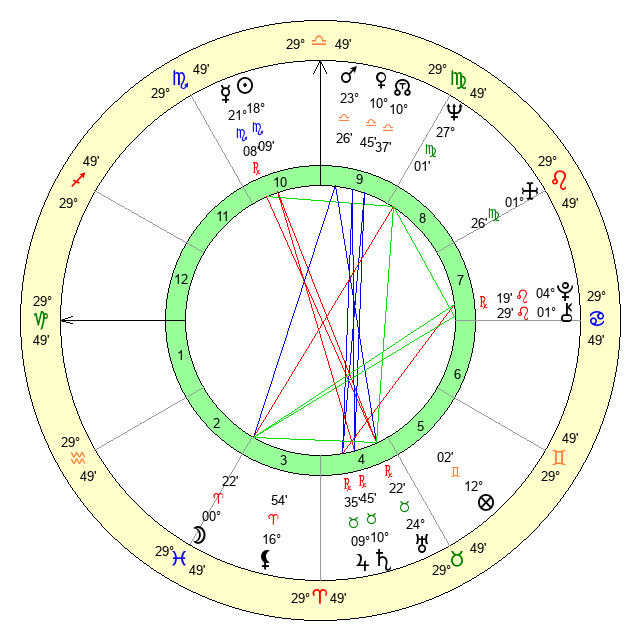 | Moon | 0 Aries 27 | 29 Cancer 33 | 5 Taurus 58 |