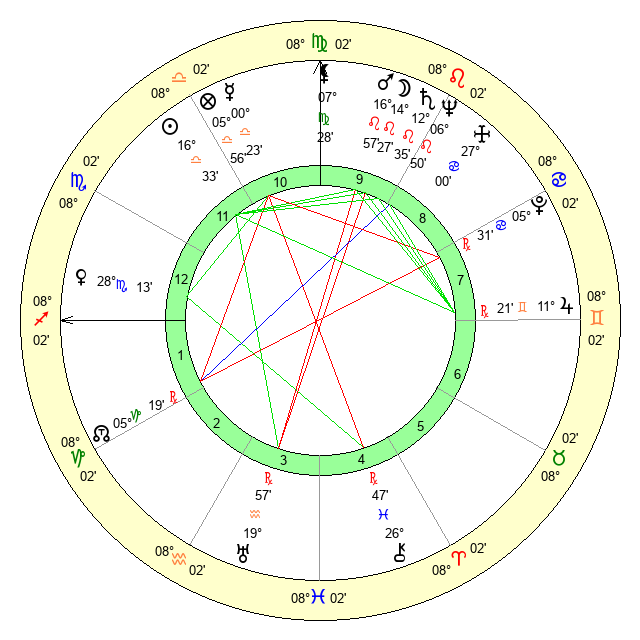 | Venus | 28 Scorpio 13 | 25 Virgo 45 | 27 Aquarius 43 |